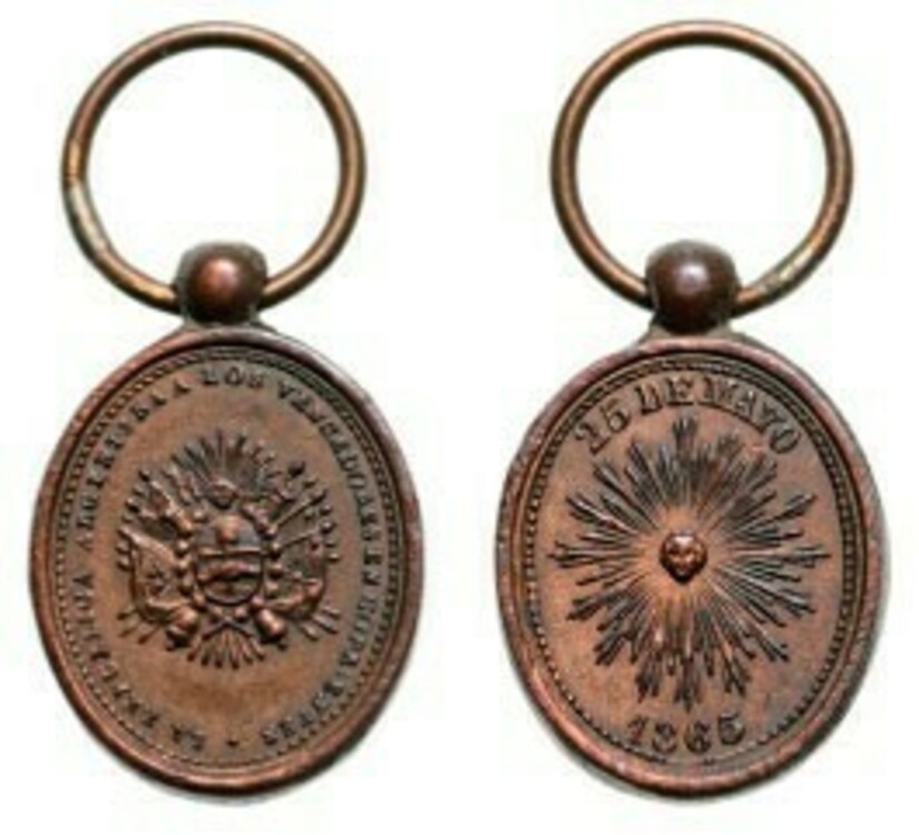 The Medal features an obverse inscription that can be translated to "The Republic of Argentina to the Winners of Corrientes ," and a reverse inscription that translates to “May 25, 1865.”
