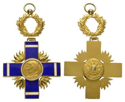 This Order is awarded with six grades limited by decree; I Class Grand Cross (with gilded breast star) is limited to 20 bestowals, II Class Grand Cross (with silvered breast star) is limited to 40, Grand Officer and Commander are limited to 60, Officer is limited to 80, and Knight is unlimited.