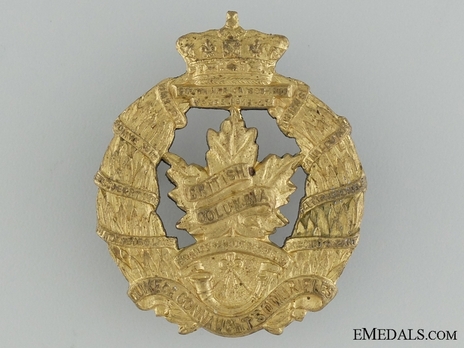 Obv: SOUTH AFRICA 1899-1900 YPRES 1915-17 VIMY 1917 AMIENS SOMME 1916 CANAL DU NORD FESTUBERT 1915 PASSCHENDALE HINDENBURG LINE DROCOURT QUEANT BRITISH COLUMBIA FRANCE FLANDERS 1915-18 DUKE OF CONNAUGHT'S OWN RIFLES