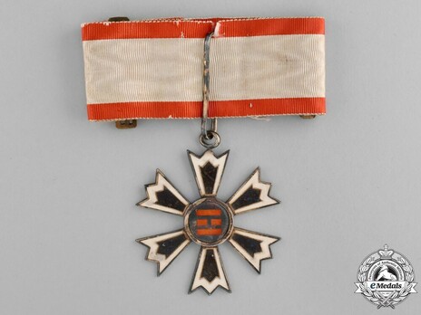 This Order was established on the 6th Anniversary of Korean Independence. The symbolism used is the Chinese Ba Gua, based on Taoist cosmology. Each Class is represented by a particular object and figure. The III Class is fire and elegance.