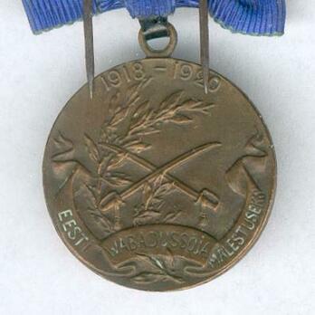 The Commemorative Medal of the Estonian War of Independence was awarded to those who served in the Estonian War of Independence between November 28, 1918, and February 2, 1920. It was awarded to wounded combatants on a ribbon with a bow.