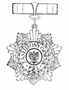It was conferred upon Polish miners, mine technicians, and mining engineers for meritorious service. Recognised merits included long and faithful service, high productivity, contributions to workplace health and safety, and contributions to technological advancements in the mining industry. Recipients were entitled to a monetary award in the form of a pension increase.