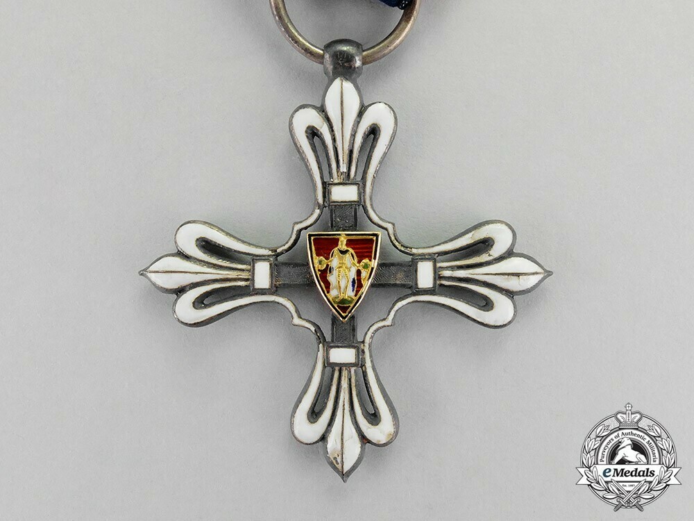 This Order was only awarded from 1836-1849 within the Duchy of Lucca. During its short lifespan, the Order consisted of three classes: I Class, II Class, and III Class. It had no breast star. The ribbon was blue with a yellow stripe on each side for all classes.