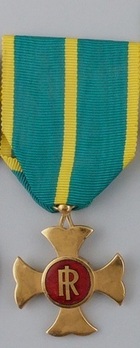 This Cross is associated with the Merit Cross for Long Service in the Financial Police, which was instituted in 1905 during the Kingdom of Italy. The modern Cross continues to be awarded in recognition of long and honourable service within the Financial Police. The Gold Cross is conferred for 40 years of meritorious service within the Financial Police.