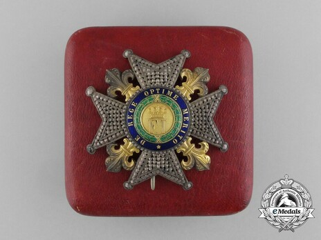 On December 21, 1858, Ferdinand II amended the Order, adding a Breast Star to the Commander grade, and creating the II Class Knight. He also altered the wearing style of the Grand Cross. Prior to 1858, the Grand Cross was worn on a ribbon around the neck, following the amendments of Ferdinand II in 1858 the Grand Cross was worn on a sash.