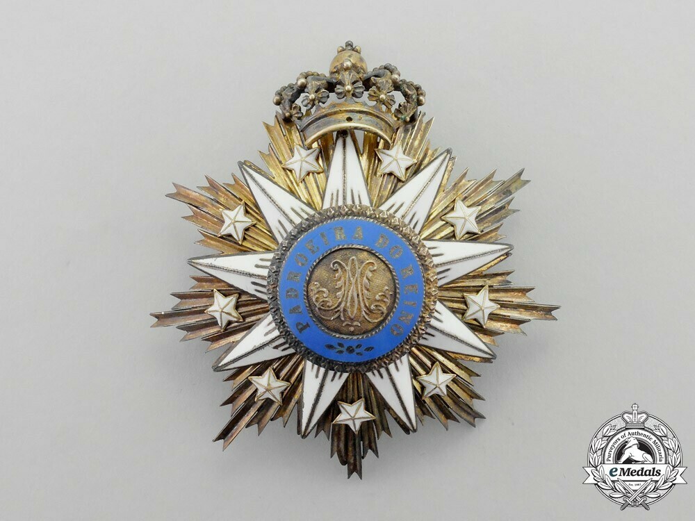 Created by King João VI/John VI of Portugal in Rio de Janerio on 6 February 1818, the date of his acclamation of the united kingdom of Portugal, Brazil, and Algarves, the Military Order of the Immaculate Conception of Vila Viçosa (Ordem Militar de Nossa Senhora da Conceição de Vila Viçosa) was established in honor of the Immaculate Conception of Mary, principal patroness of Portugal since 1646, for the effective protection of the Portuguese kingdom from the consequences of the French Revolution and Napoleonic wars.