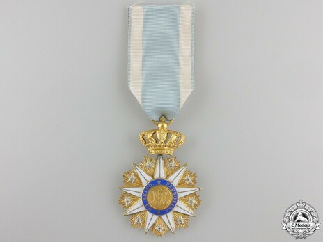 There were four grades; i.e., Grand Cross, consisting of a sash badge and a star; Commander, consisting of a neck badge and a star; Knights and Servants. There was a limit of 12 Grand Crosses, 40 Commanders, 100 Knights, and 60 Servites.