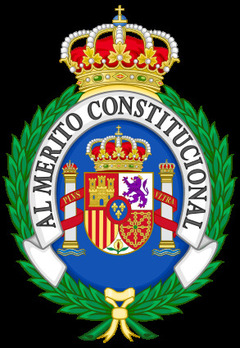 The Order of Constitutional Merit (Orden al Mérito Constitucional ) was established by the first minister Felipe Gonzales on November 18, 1988. It is conferred upon foreign and national citizens, groups, and corporations that have provided significant service towards the advancement of the values and principles delineated within the Spanish Constitution.