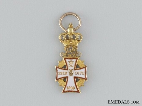 Believed to have originally been established by King Waldemar II in 1219, and later re-instituted by King Christian V, in honour of the birth of his first son (King Frederik IV) in 1671, this Order originally consisted of one class and was conferred upon noblemen, princes of royal blood, and high dignitaries. There is no evidence of this Order being established by King Waldemar II, although the current decorations continue to consist of his cypher as well as the year 1219. Originally the order consisted of one class only.