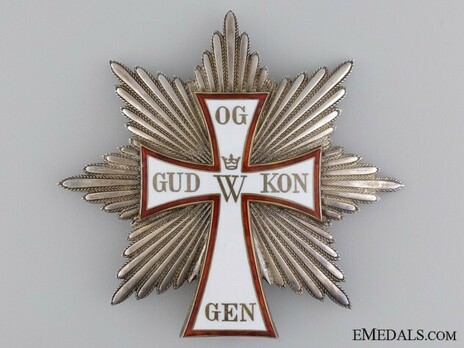 In Frederic IV (1808-1839) had embroidered stars to be paired with the Grand Commander, Grand Cross and Commander classes. There are four different varieties of the IV class knight. One has the reverse inscription reading 1808, while the other has 1818. There are six different varieties of the silver cross.