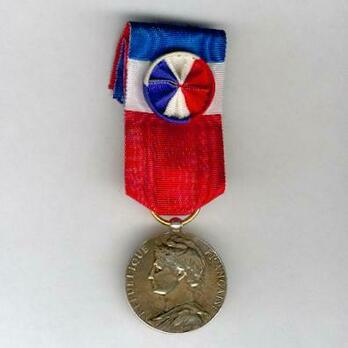 It is awarded for long and faithful service to the same employer. From 1948 to 1957 the Gold Medal was awarded for 60 years of service, the Gilt “Rappel” Medal for 50 years of service, the Gilt Medal for 40 years of service, and the Silver Medal for 30 years of service. From 1957 to 1974 the Large Gold Medal was awarded for 55 years of service, the Gold Medal for 45 years of years, the Gilt Medal for 35 years of service, and the Silver Medal for 25 years of service. From 1974 to 1984 the Large Gold Medal was awarded for 48 years of service, the Gold Medal for 43 years of service, the Gilt Medal for 35 years of service, and the Silver Medal for 25 years of service. From 1984-2000 the Large Gold Medal was awarded for 43 years of service, the Gold Medal for 38 years of service, the Gilt Medal for 30 years of service, and the Silver Medal for 20 years of service. Since 2000 the Large Gold Medal has been awarded for 40 years of service, the Gold Medal for 35 years of service, the Gilt Medal for 30 years of service, and the Silver Medal for 20 years of service.