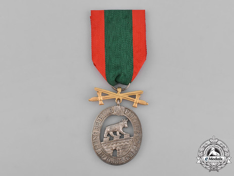 The Order was amended on July 18, 1864, to incorporate crossed swords as a possible addition for wartime merit. The crossed swords, which are added between the top of the medal and the suspension ring, indicate a Military Division award. The absence of crossed swords indicates a Civil Division award.