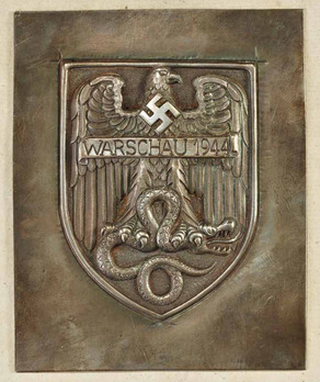 The design of the badge was approved and the dies created, but they were subsequently destroyed during an air raid and no badges were ever produced. Some matrices survived the war, but very few copies exist. As such, it is impossible to authenticate Warsaw Shields currently on the market.