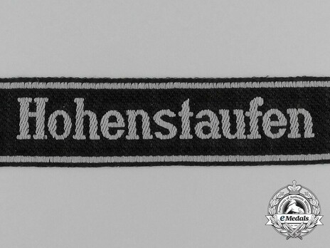 In March of 1943, the 'Hohenstaufen' BeVo weave cuff title was introduced for Non-Commissioned Officers and Enlisted Men. It is believed that a flatwire machine-weave cuff title was produced for Officers.