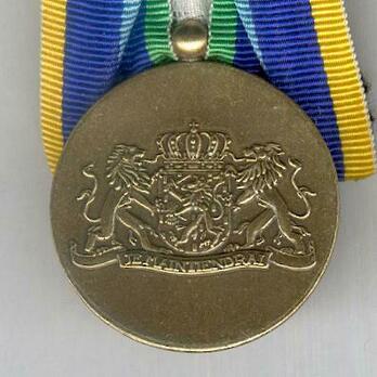 The Navy Medal is awarded to members of the Royal Netherlands Navy and the Royal Netherlands Marines in recognition at least 72 months of operational service, with at least 36 of those months spent at sea. It was originally awarded for at least 6 months of service in STANVFORLANT (Standing NATO Maritime Group 1), STANAVFORMED (Standing NATO Maritime Group 2), STANAVFORCHAN (Standing Naval Force Channel), the Netherlands Antilles, or Netherlands New Guinea.