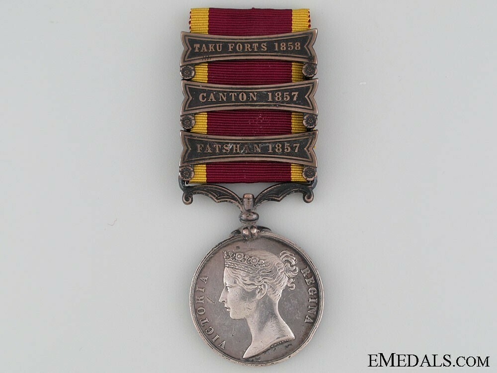 The Second China War Medal was established by Royal Warrant on March 6, 1861. The Medal was awarded to Officers, Non-Commissioned Officers, and other ranks of the British Army, Indian Army, Royal Navy and Royal Marines in recognition of service in Second Opium War from 1857-1860.