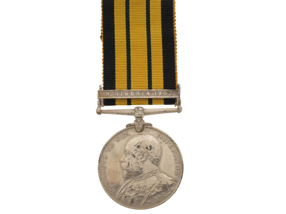 The Africa General Service Medal was instituted by King Edward VII, King of England, in 1902 to replace the East and West Africa Medal (1887-1900). The Africa General Service Medal was the longest running British service medal, being awarded to British and colonial forces in commemoration of minor campaigns in Africa between 1902 and 1956. The Medal was seldom awarded to European troops and most often awarded to local forces and detached officers. Combatants were the recipients of Silver Medals, while a few Bronze Medals were issued to troops involved in operations in North Nigeria between 1903 and 1904, campaigns in Somaliland between 1902 and 1908, and to transport personnel.