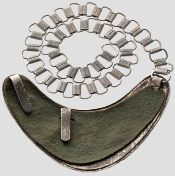 The gorget has a matt silver-coloured shield and chain, and a dark field-grey scroll.