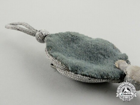 Constructed of extremely thin twisted silver aluminum bullion wires over thick black cord, all braided into an ornate knot with a silvered aluminum shield depicting a national eagle perched atop a mobile swastika; the knot with a field grey wool backer; the underside of the braid with a protective off-white strip of fabric; with an acorn attached to the lower end of the lanyard; both ends ending in a loop for uniform attachment; measuring 410 mm long; with some of the silver wires having come undone due to age and wear, but overall extremely fine condition.
