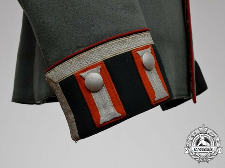 A special version was introduced on September 15, 1939 for members of the Infantry Regiment “Großdeutschland”. It has white piping and white metal buttons. The collar Litzen are elongated. Officer tunics have two collar Litzen, while those for EMs and NCOs only have one. There are three cuff-patches per cuff, which are of the so-called “French” cuff patterns.