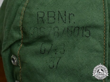The lining of government issued caps was made from light-green/green satin weave, and it did not include a sweatband. The government issued caps also generally feature the RB Numbers on the lining. Maker marks are also seen on the lining, but rarely.