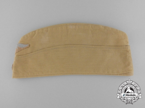 During the Second World War, a tropical tan-coloured field cap was introduced for wear by Luftwaffe troops. This cap was worn by Luftwaffe personnel who were stationed/serving in the Mediterranean and Africa. It followed the same piping rules as the blue-grey field cap, but it was made from tan-coloured light-weight cotton, and the national emblem eagle was embroidered on a tan-coloured backing. Insignia composed of wire thread was avoided on the tropical caps of Generals and Officers. The interior cotton lining of these tropical caps is generally red, but there are rare examples of a tan interior lining. Also, unlike the blue-grey field caps, the side skirts of the tropical cap are movable.