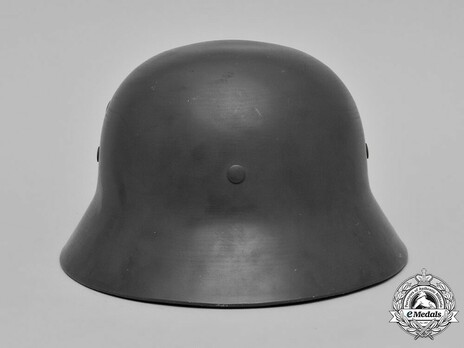 Inspired by the first modern steel helmets introduced by the French and the British, the first German steel helmet was developed and introduced in early 1916. It was slightly modified in 1918 in that the lugbolts on the neck guard were removed and replaced by a “D” type connection that was directly affixed to the liner band. A special version of the M18 helmet has a cut-out part of the rim around the ear. It was used by those soldiers that needed to use communication devices and relied on their ability to hear.