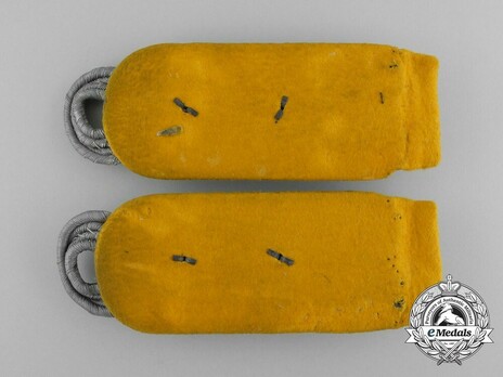 Members of the Flugführerkorps (Flying Leader Corps) initially wore shoulder boards with the Administrative branch’s dark green underlay and a secondary underlay in golden-yellow on top. This was changed in October of 1941 when the dark green underlay was switched to pink, with the golden-yellow secondary underlay remaining on top of it.