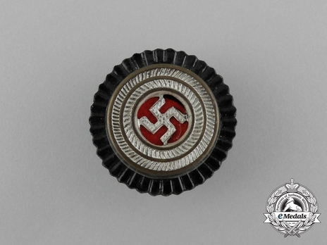 The next cockade model was introduced in January of 1934. The M34 cockade presents an outer ring in red and a raised inner ring in silver with a black swastika in the centre. The swastika part was discontinued in 1942, however, since old stock was to be used up, cockades featuring swastikas could be encountered even after this date.
