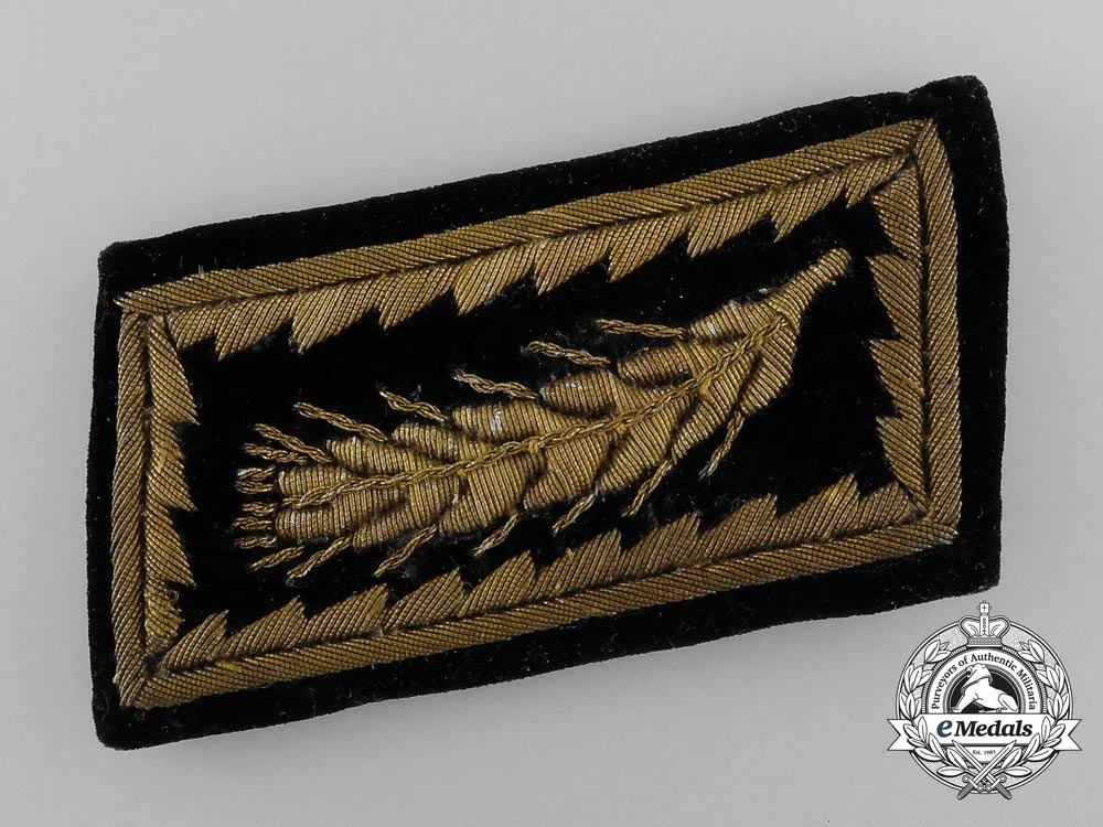 Ranks of Reichsarbeitsführer to Generalarbeitsführer wore the same collar tabs, featuring a hand-embroidered gold-coloured ear of wheat within a gold-coloured frame, the inner part of which is in a “saw-edge” pattern.