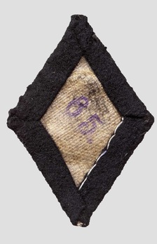 The trade insignia are in the form of black, diamond-shaped cloth insignia. Officer grade diamonds were embroidered with aluminium wire, while Non-Commissioned Officer (NCO) and Enlisted Men (EM) diamonds were embroidered with silver-grey thread. Some examples of Officer grade sleeve diamonds are piped with twisted aluminium cord.