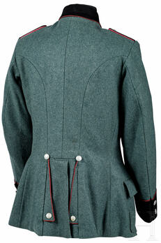 Other than the change in colour, another main difference of the green tunic compared to the blue one is in the cuffs. These are not in the same colour as the rest of the tunic, but in black, with two silver-coloured buttons each. This was changed to brown in September of 1942.