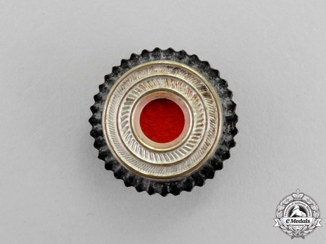 Initially, RLB members wore the plain standard national tri-colour cockade that was used by the NSDAP and all related organisations. It was generally made of metal and plastic, but could be embroidered on occasion. The cockade has a red centre with a white/silver inner ring and a black outer ring.