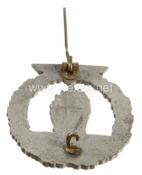 The badge was instituted by the Supreme Commander of the Kriegsmarine, Erich Raeder. Its full name is Minesweeper, Subchaser, and Escort Vessel War Badge (Kriegsabzeichen für Minensuch-, U-Boots-Jagd- und Sicherungsverbände). It was awarded to German Navy personnel protecting German-controlled coastlines performing a variety of duties.