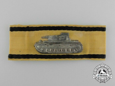 The Gold Badge features a silver or gold coloured tank on a silvered/yellow embroidered threads, with black stripes along the exterior edges. The ribbon of the Gold Badge is made of gold celleon or gold bullion wire. The early versions of the Gold Badge feature a silvered tank, while the later version of the Gold Badge features a blackened tank.