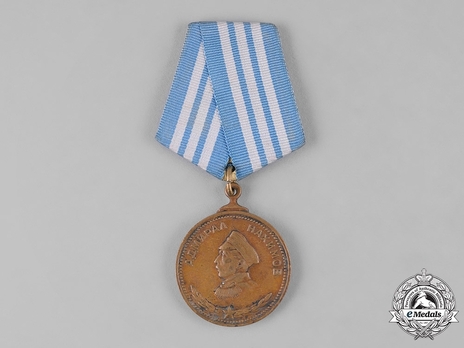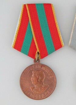 The first military medals of the war (For the Defense of Leningrad, For the Defence of Odessa, For the Defense of Sevastopol, For the Defence of Stalingrad) were instituted in 1942. They were made of brass and were the first medals to be worn on the pentagonal ribbon.