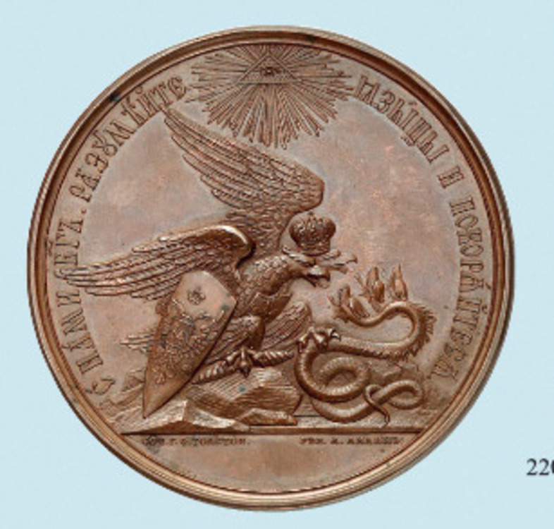 This medal was instituted during the reign of Nicholas I in commemoration of the end of the military operations during the Hungarian Revolution of 1848. It was conferred upon generals, officers, non-commissioned officers, and enlisted men, as well as members of the clergy and doctors who actively participated during the campaign against Hungary.
