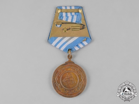 The Nakhimov Medal was established on March 3, 1944. This medal was conferred in recognition of excellence in defending the Soviet territory, and in completing a Navy combat mission. It was largely awarded to enlisted sailors, but was also awarded to soldiers, petty officers and non-commissioned officers, chief petty and warrant officers of the Navy during the Great Patriotic War.This medal was awarded 13,000 times before 1991.